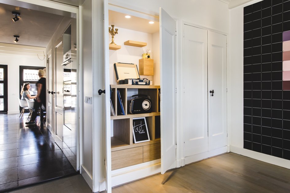 Oud en nieuw komen samen bij deze prachtige inbouwkast. Vroeger waren dit bedsteden. Dit is nu omgebouwd tot een moderne inbouwkast met verschillende mogelijkheden. Er zitten kastjes en lades in verwerkt met push to open sluiting.