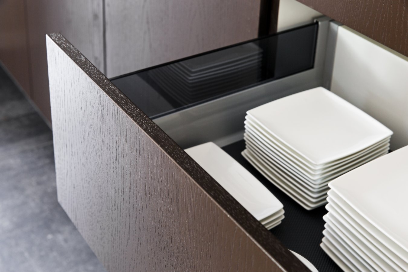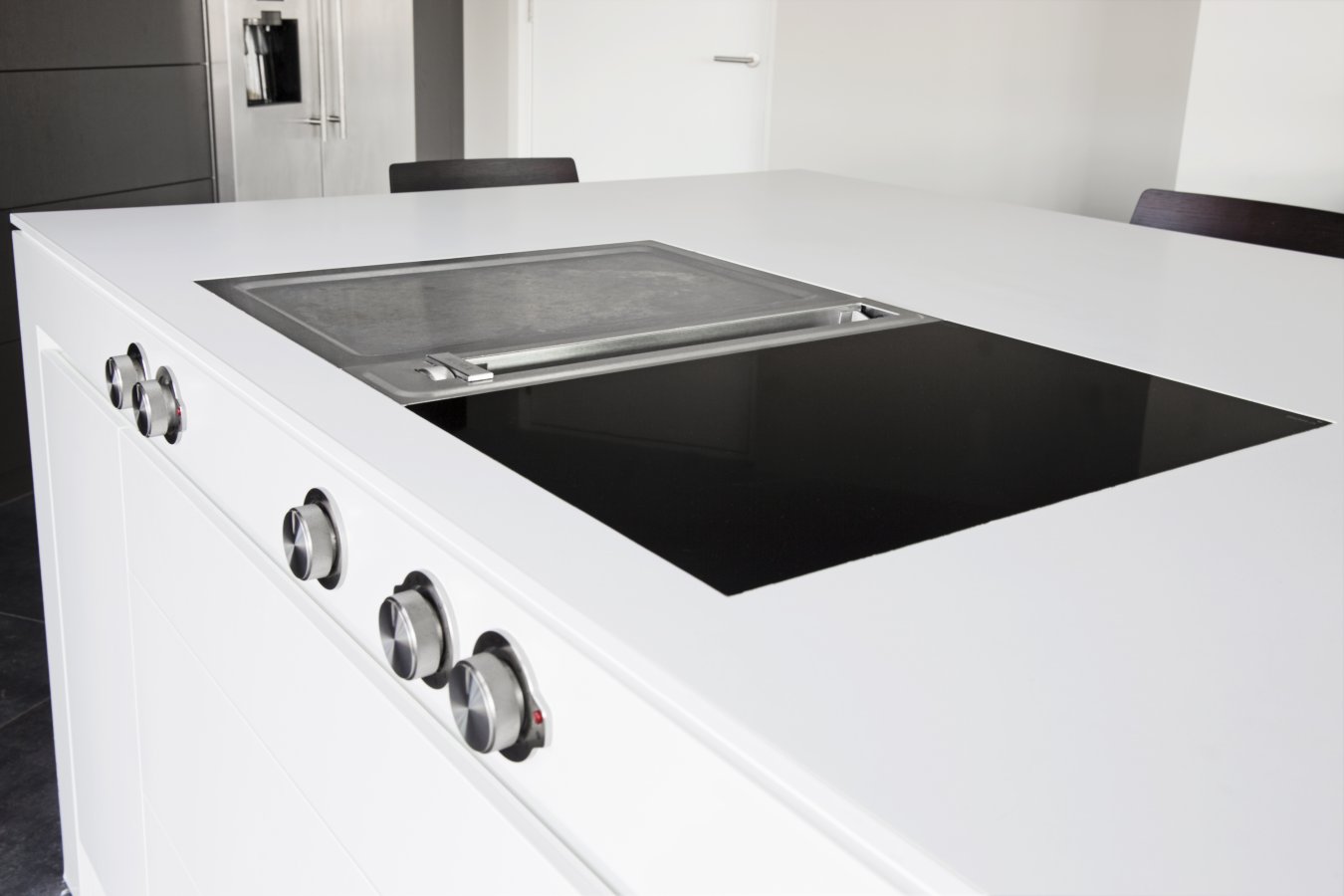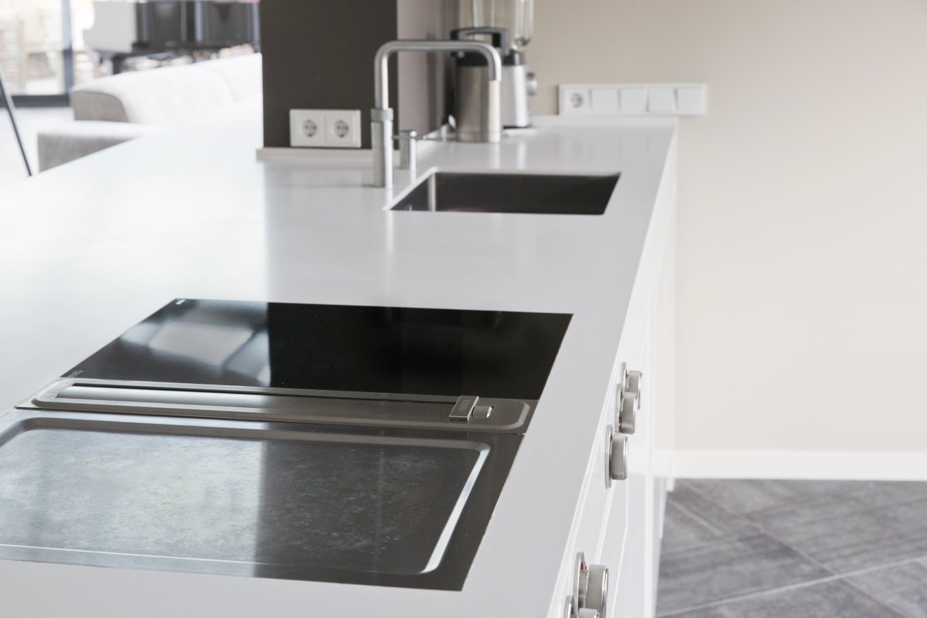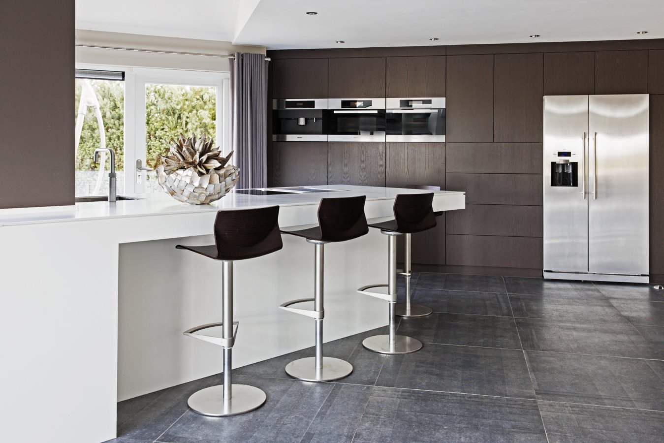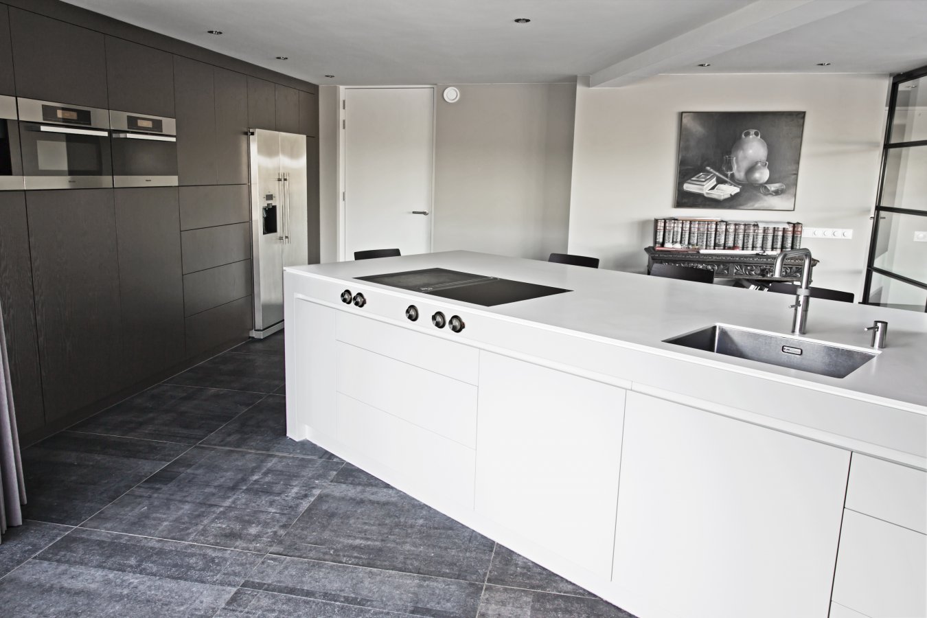 Zeer fraaie woonkeuken die door de manier van plaatsing een speciaal effect geeft op het geheel.